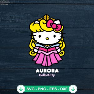 SALE Hello Kitty Auroura Princess SVG, Auroura Princess Cat SVG, Disney Princess SVG PNG DXF Cricut